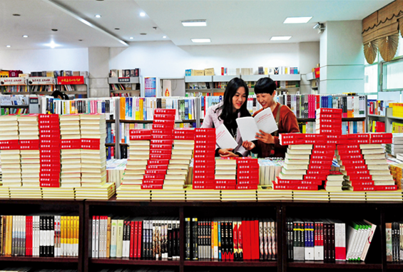 2017年11月1日,湖北宜昌,新华书店展出的十九大报告发行刊物。供图/CFP