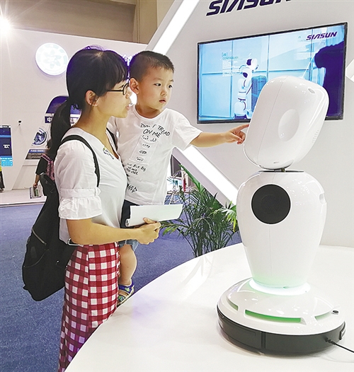 智博会上,新松智能服务机器人吸引了小朋友的目光