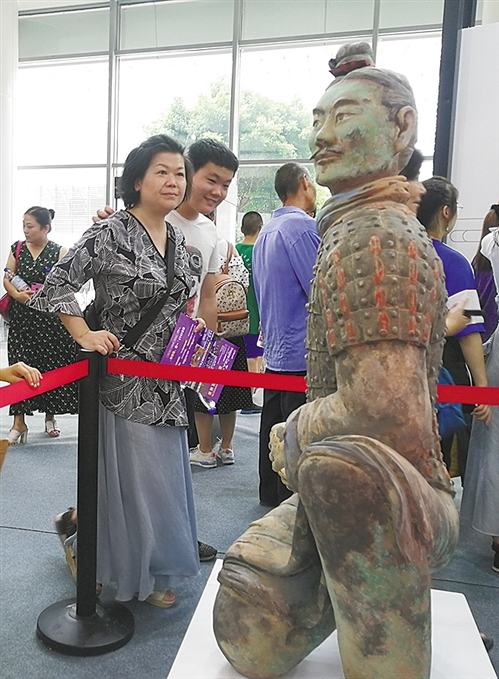 国家文物局在智慧文博馆内展出的由3D打印彩绘成型的跪射武士俑