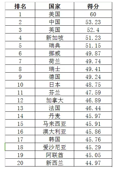 世界互联网发展指数各国得分情况