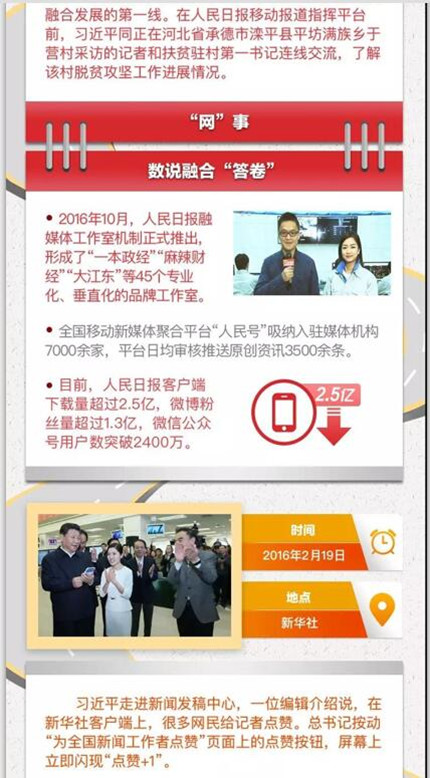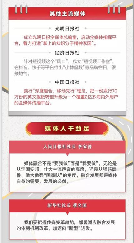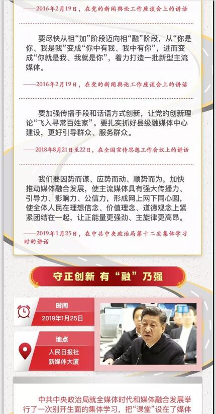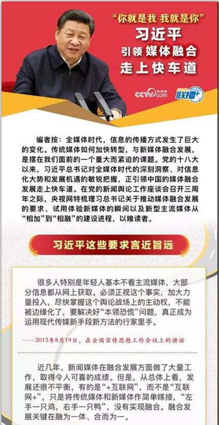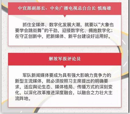 党的十八大以来,以习近平同志为核心的党中央高度重视传统媒体和新兴媒体的融合发展。3年前的2月19日,习近平总书记为新形势下党的新闻宣传工作指明了方向;3年后,习总书记再次深刻分析全媒体时代的挑战和机遇,明确提出推动媒体融合向纵深发展的重大要求。这一系列重要论述,立意深刻,谋划科学,纲举目张,使新闻舆论工作气象一新。
