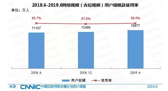 截至2019年6月,我国网络视频用户规模达7.59亿,较2018年底增长3391万,占网民整体的88.8%。各大视频平台进一步细分内容品类,并对其进行专业化生产和运营,行业的娱乐内容生态逐渐形成;各平台以电视剧、电影、综艺、动漫等核心产品类型为基础,不断向游戏、电竞、音乐等新兴产品类型拓展,同时以IP为中心,通过整合平台内外资源实现联动,形成视频内容与音乐、文学、游戏、电商等领域协同的娱乐内容生态。