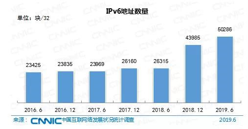 截至2019年6月,我国IPv6地址数量为50286块/32,较2018年底增长14.3%,已跃居全球第一位。我国IPv6规模部署不断加速,IPv6活跃用户数达1.3亿,基础电信企业已分配IPv6地址用户数12.07亿;域名总数为4800万个,其中“.CN”域名总数为2185万个,较2018年底增长2.9%,占我国域名总数的45.5%。