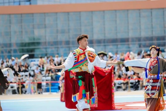 9时,成都国际非物质文化遗产博览园世纪舞广场洋溢着节日的氛围,非遗节正式拉开帷幕。现场人潮涌动,观众怀着期待的目光注视着舞台,欢呼声、掌声此起彼伏。开幕式分为“新路寻根”“新章铸魂”“新生跨界”“新元传灯”四个部分,通过峨眉武术、太极表演、陕北说书与街舞跨界等多种形式,展现了非遗的国际对话与跨界创新。