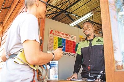 在南非约翰内斯堡,一名游客使用支付宝支付