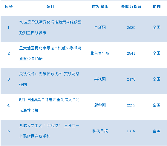 新华网炫知传播力分析系统显示,今日互联网传播力前五名分别是: