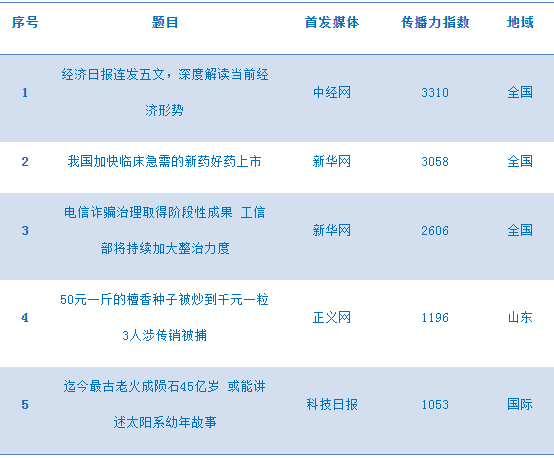 新华网炫知传播力分析系统显示,今日互联网传播力前五名分别是: