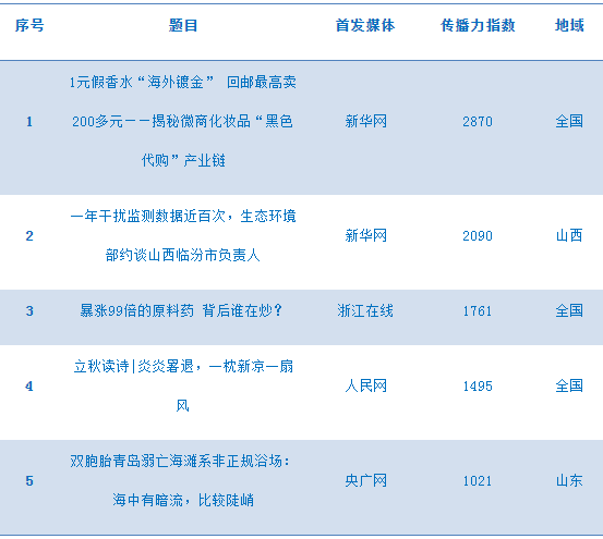 新华网炫知传播力分析系统显示,今日互联网传播力前五名分别是: