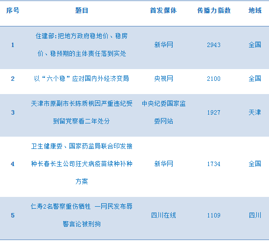 新华网炫知传播力分析系统显示,今日互联网传播力前五名分别是: