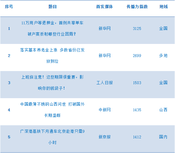 新华网炫知传播力分析系统显示,今日互联网传播力前五名分别是: