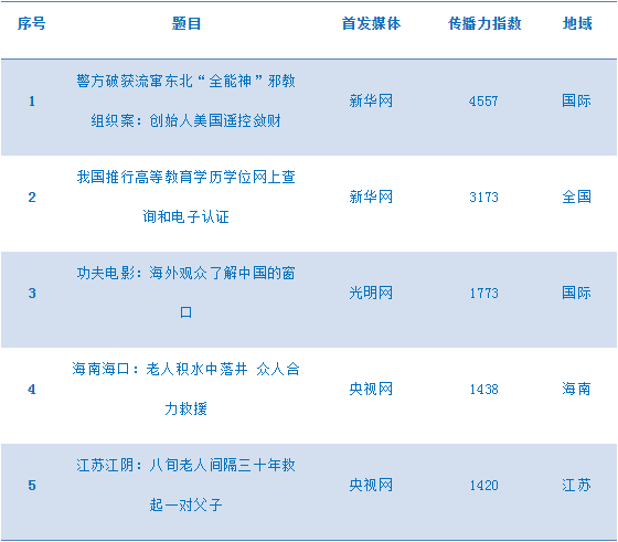 新华网炫知传播力分析系统显示,今日互联网传播力前五名分别是: