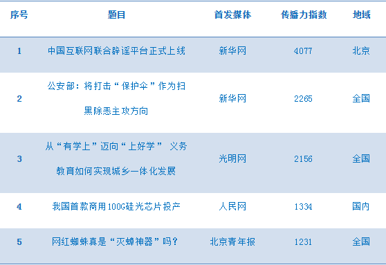 新华网炫知传播力分析系统显示,今日互联网传播力前五名分别是: