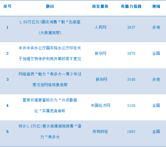 新华网炫知传播力分析系统显示,今日互联网传播力前五名分别是: