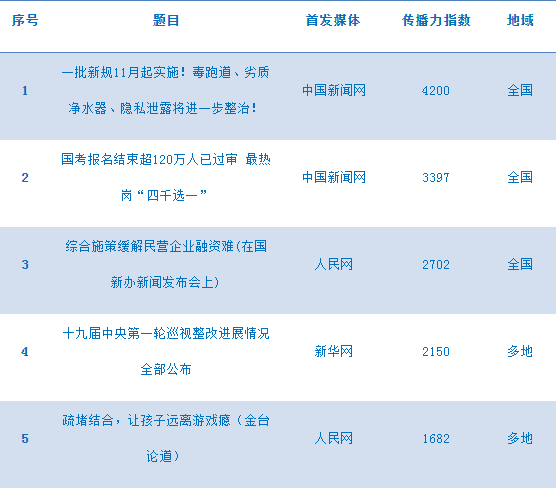 新华网炫知传播力分析系统显示,今日互联网传播力前五名分别是: