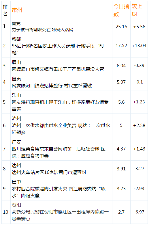四川地市州敏感舆情指数